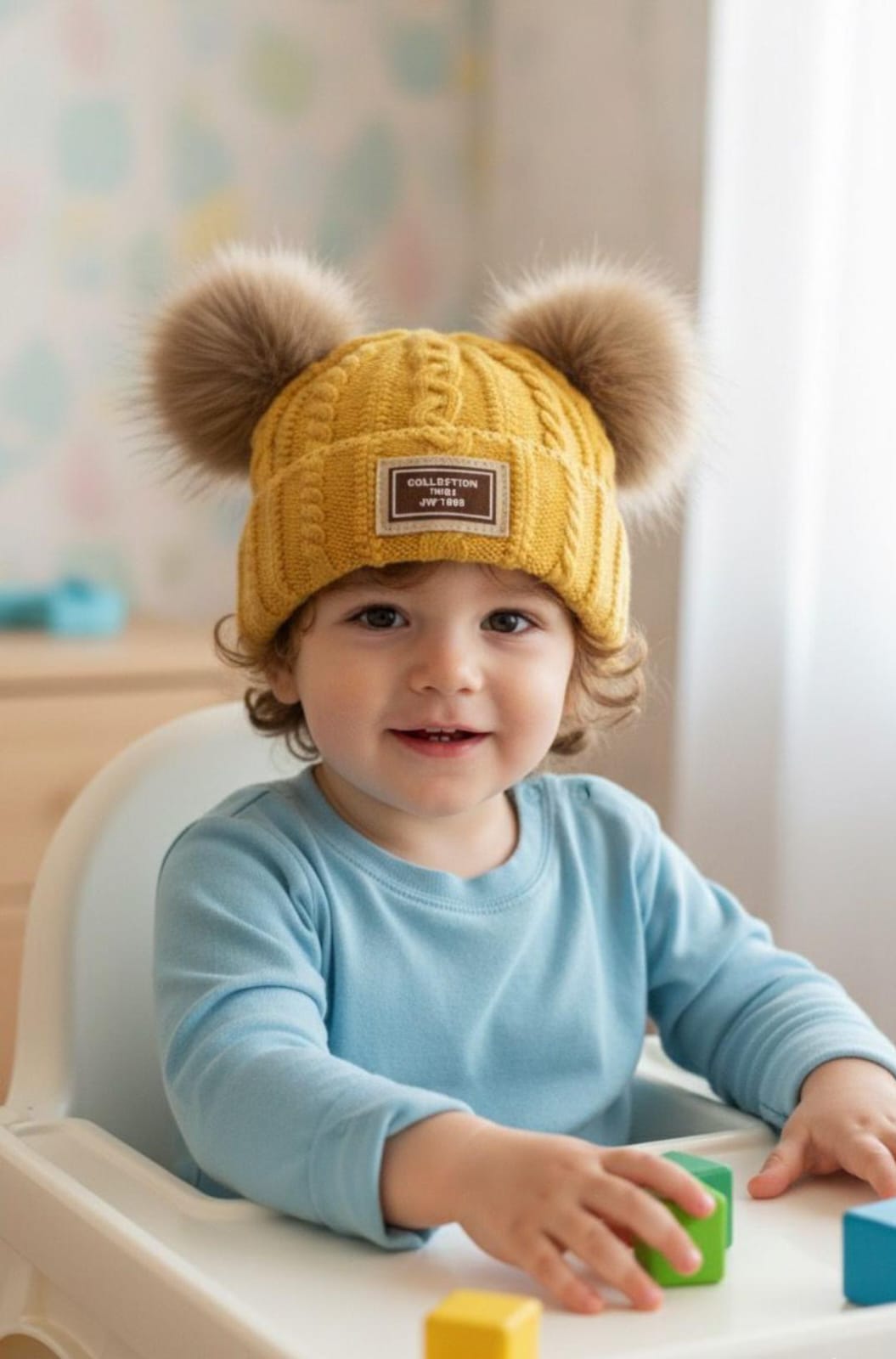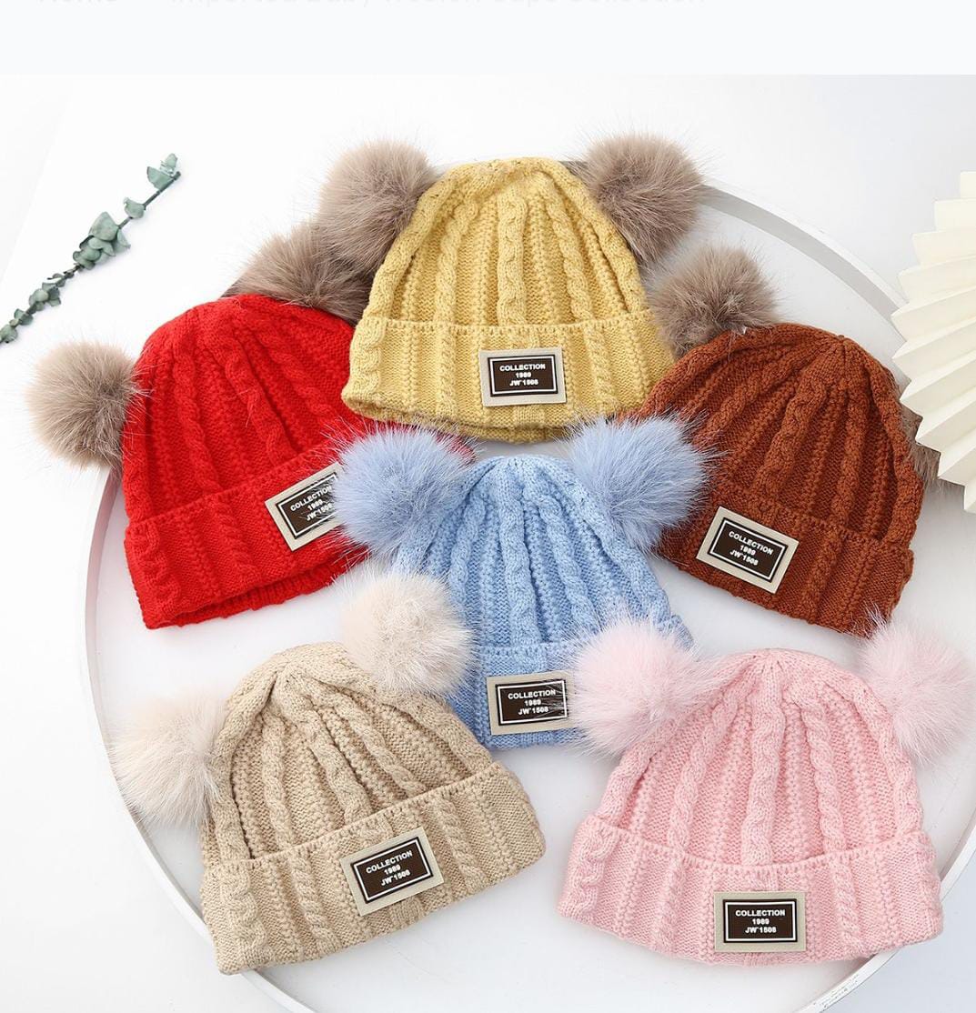 Wrap your little one in cozy cuteness with the CuddleCub Knit Beanie – Double Pom Winter Cap. Crafted from soft, stretchable knit fabric, this adorable beanie keeps your baby’s head warm and comfy all winter long. The double faux-fur pom design gives it a playful bear-ear look, making it a favorite for both kids and parents!